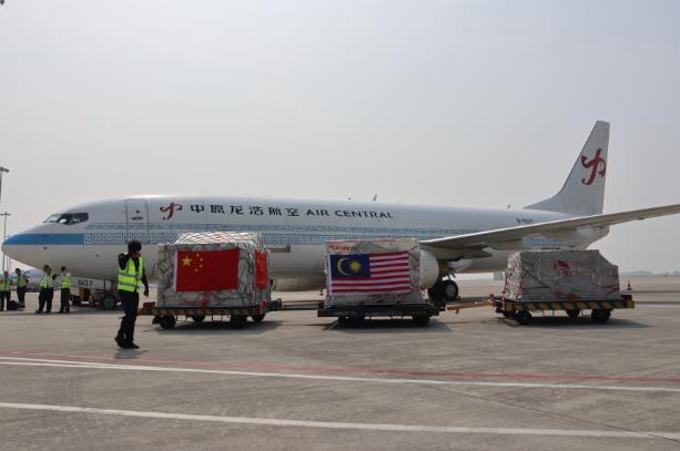 8月25日上午,吉隆坡-鄭州鮮食榴蓮首航接機儀式在鄭州機場舉行,馬來西亞首批鮮食榴蓮進入中國市場,中馬航空貨運樞紐項目加速推進。