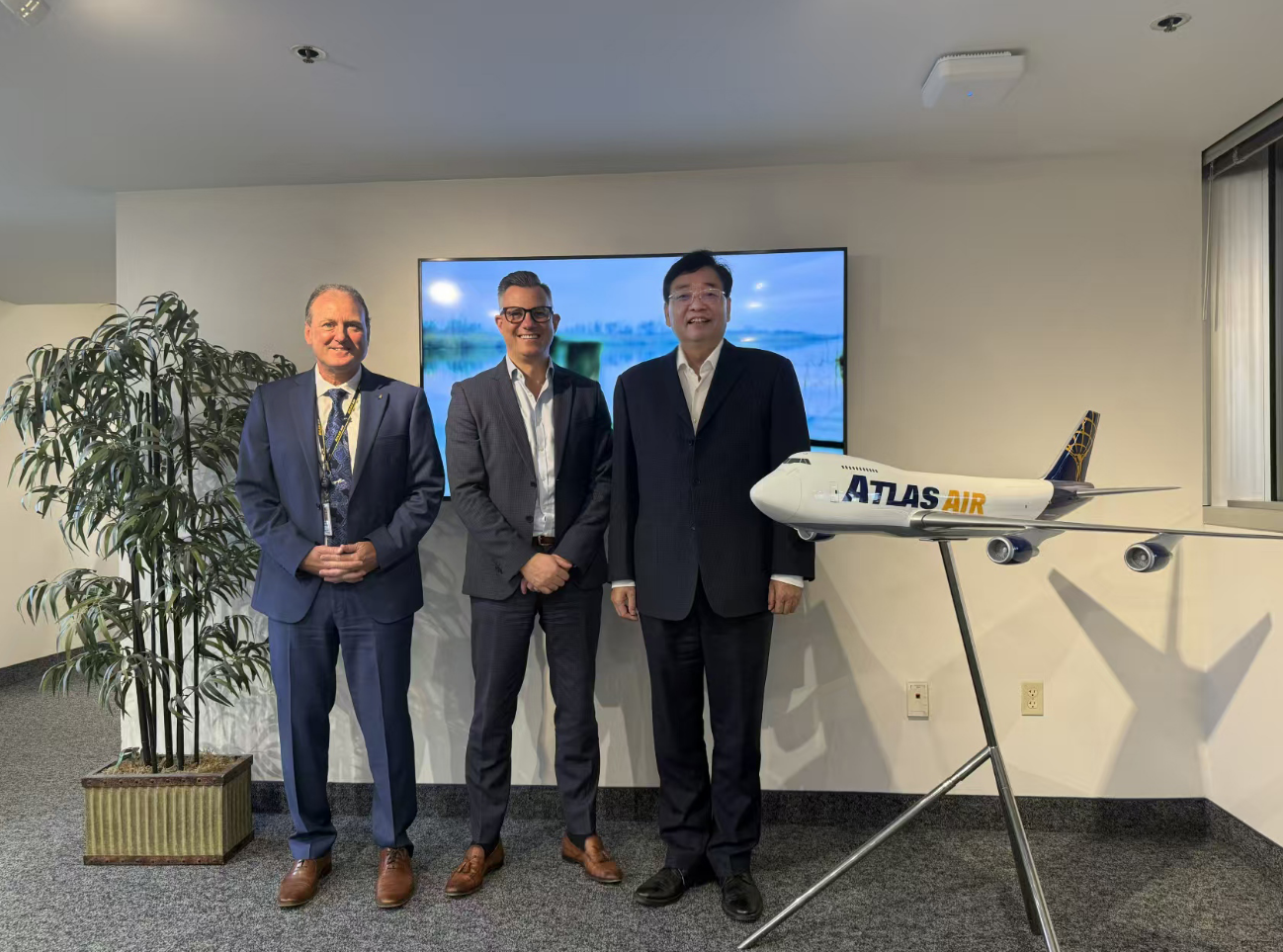 11月20日,代表團一行在邁阿密阿特拉斯航空總部與阿特拉斯航空首席策略官Martin Drew會談。張明超表示,阿特拉斯航空在全球航空貨運市場的業務規模不斷增加,發展后勁充足。中豫航空集團正在加快推動鄭州現代航空樞紐建設,將不斷提升鄭州機場服務保障能力,與航空公司共贏發展。希望阿特拉斯航空持續加大在鄭運力投放,與中豫航空集團開展全面合作。Martin Drew對鄭州機場今年以來的航空貨運高速發展給予充分肯定。他表示,當前,中豫航空集團為推動鄭州航空樞紐建設采取了很多有效措施,作為與鄭州機場合作10余年的老朋友,阿特拉斯航空非常認可鄭州機場在保障能力等方面的優勢,今后將會探索通過開展共同銷售等業務加強與其他航司在鄭合作,創新業務模式,加大運力投放。