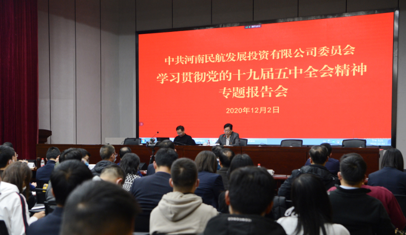 為認真學習貫徹黨的十九屆五中全會精神,落實黨中央、省委省政府關于學習宣傳貫徹黨的十九屆五中全會精神的工作部署,使廣大黨員切實把握十九屆五中全會精神實質,12月2日下午,河南航投黨委邀請河南省社會科學院院長谷建全,舉辦學習貫徹黨的十九屆五中全會精神專題報告會,會議由公司黨委書記、董事長張明超主持。