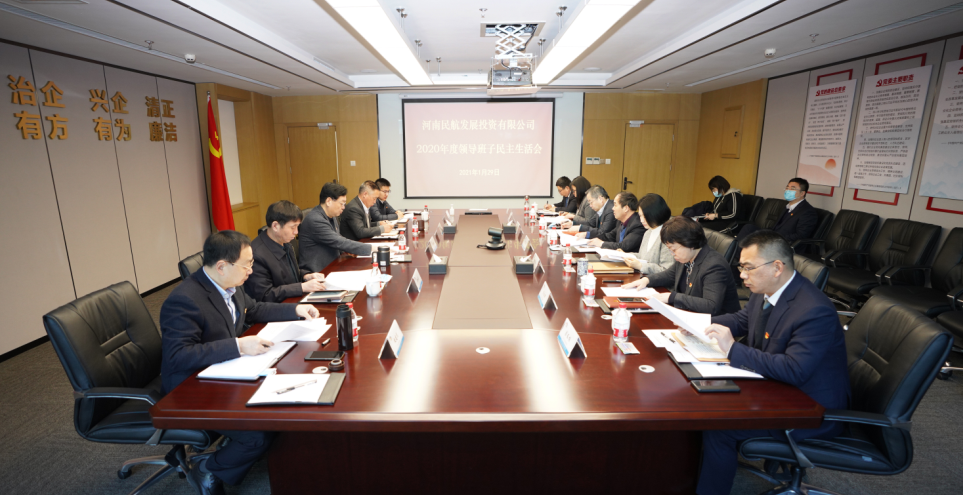 按照省委省政府、省政府國資委統一部署,1月29日,河南航投召開2020年度領導班子民主生活會,緊扣“認真學習貫徹習近平新時代中國特色社會主義思想,加強政治建設,提高政治能力,堅守人民情懷,奪取決勝全面建成小康社會、實現第一個百年奮斗目標的偉大勝利,開啟全面建設社會主義現代化國家新征程”這一主題,緊密聯系班子成員個人思想和工作實際,進行自我檢查、黨性分析,開展批評和自我批評。黨委書記、董事長張明超主持會議并作總結講話。省紀委監委第八監督檢查室副主任黃裕民、四級主任科員徐祥會到會指導并作點評。河南航投領導班子成員參加會議。