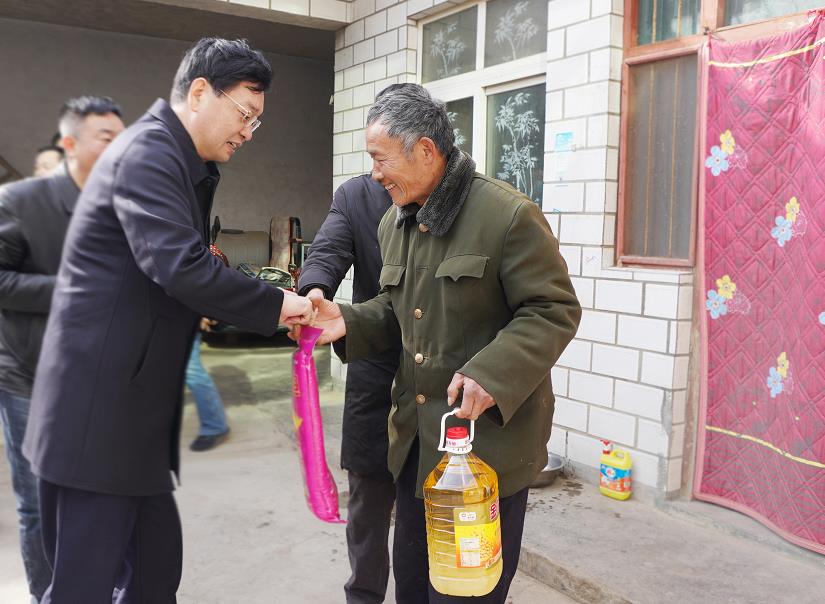 春節將至,為鞏固脫貧攻堅成果,2月1日上午,河南航投黨委書記、董事長張明超帶隊前往湯陰縣菜園鎮后皇甫村慰問,公司黨委副書記、工會主席安建民,部分中層管理人員及結對幫扶人員一同參加。