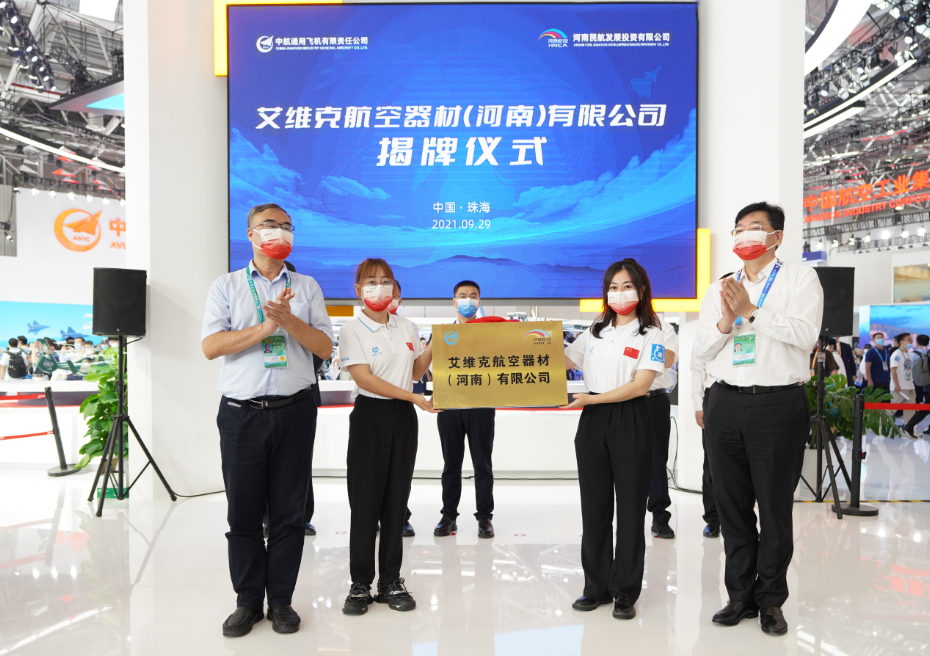9月29日,艾維克航空器材(河南)有限公司(以下簡稱艾維克河南公司)揭牌儀式在珠海第十三屆中國國際航空航天博覽會現場舉行。河南民航發展投資有限公司(以下簡稱河南航投)黨委書記、董事長張明超,中航通用飛機有限責任公司(以下簡稱航空工業通飛)黨委書記、董事長白小剛共同揭牌。河南省發展改革委副主任李迎偉出席儀式,河南航投副總經理謝亞偉及相關業務負責人參加。
