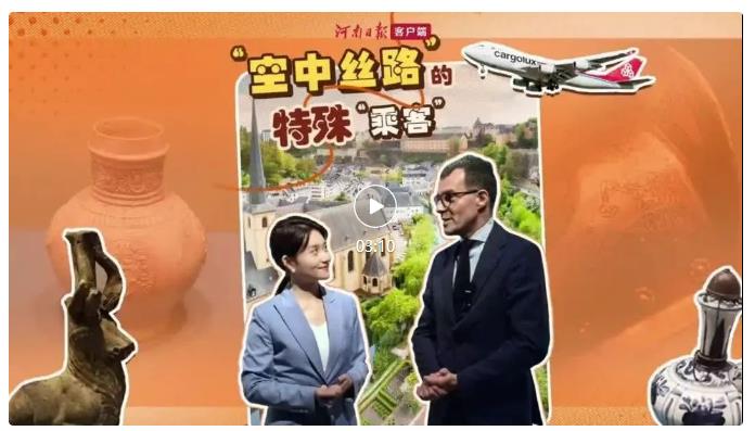 2022年11月,在首屆鄭州—盧森堡“空中絲綢之路”國際合作論壇上,河南省文物局與盧森堡國家考古、歷史與藝術博物館簽署合作協議,雙方將持續在文物展覽、博物館管理及其他文化遺產領域開展合作。2023年12月,豫盧間直飛客運航線開通,鄭盧“空中絲路”實現人享其行,人員往來便利化水平有效提升。從盧森堡出發,貨物直達、人員直飛,河南與盧森堡之間的交流越來越便捷。